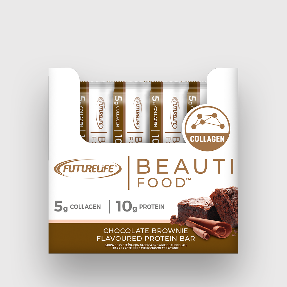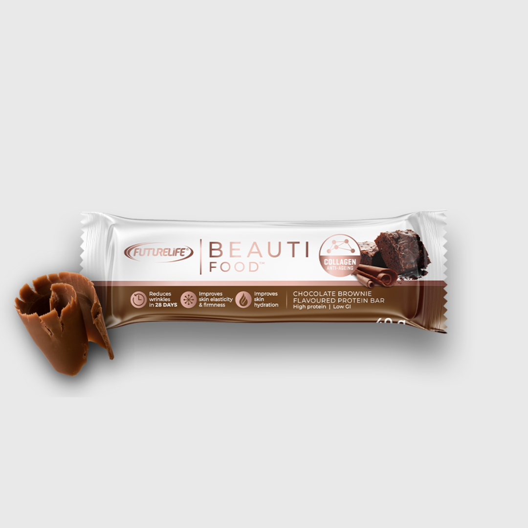 FUTURELIFE® Beauti Food™ is a scientifically formulated combination of 5g bioactive collagen peptides in a protein bar for a youthful ageing solution on-the-go.