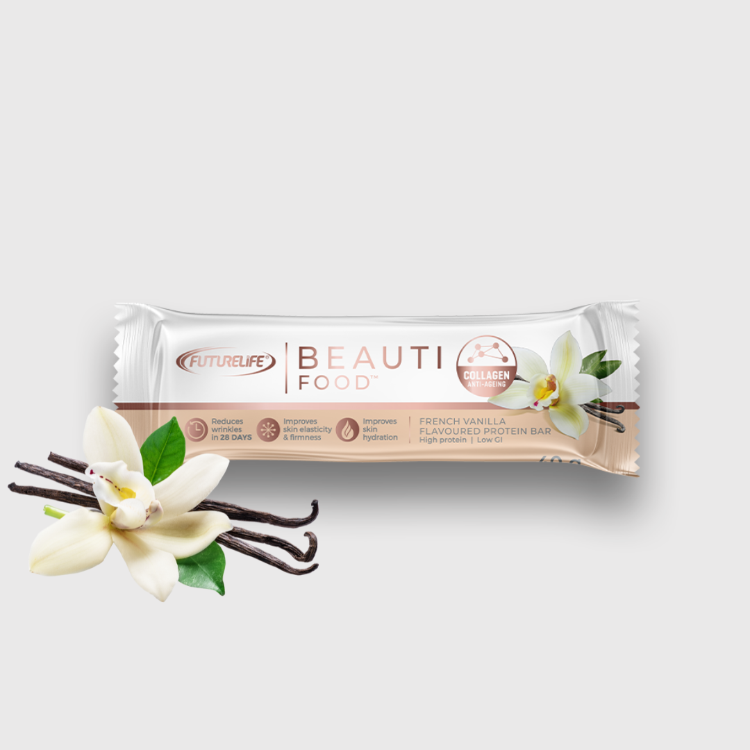 FUTURELIFE® Beauti Food™ is a scientifically formulated combination of 5g bioactive collagen peptides in a protein bar for a youthful ageing solution on-the-go.