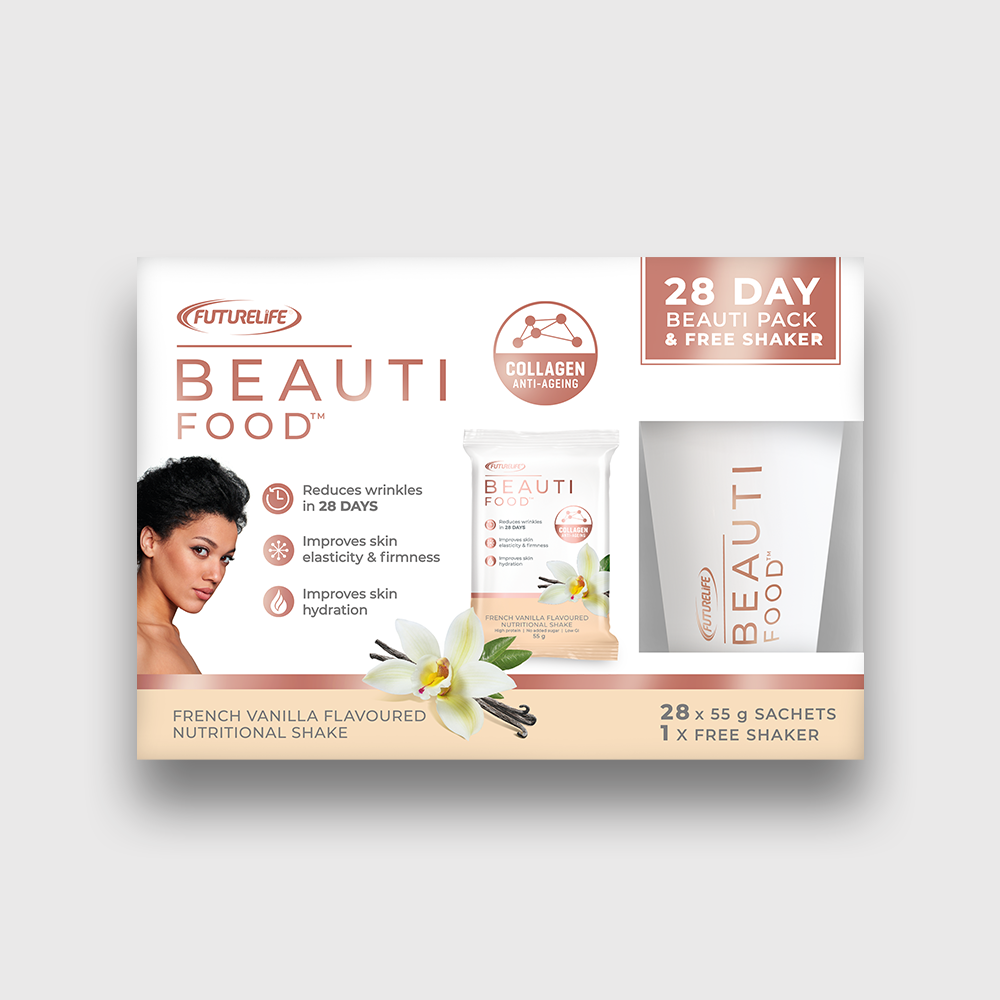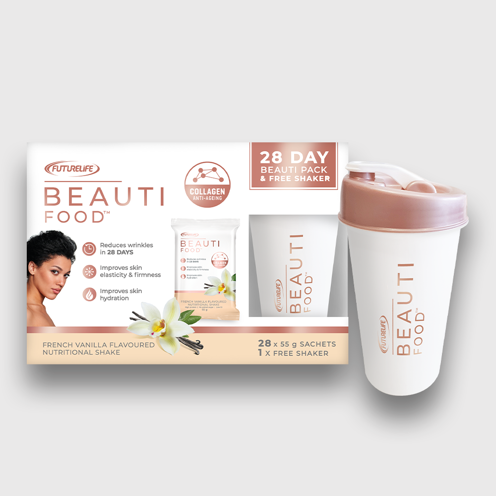 FUTURELIFE® Beauti food™ is a scientifically formulated combination of 5g bioactive collagen peptides in a nutritional shake for a youthful ageing solution on-the-go.
