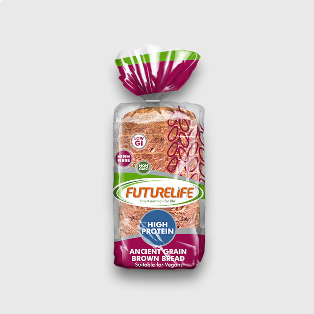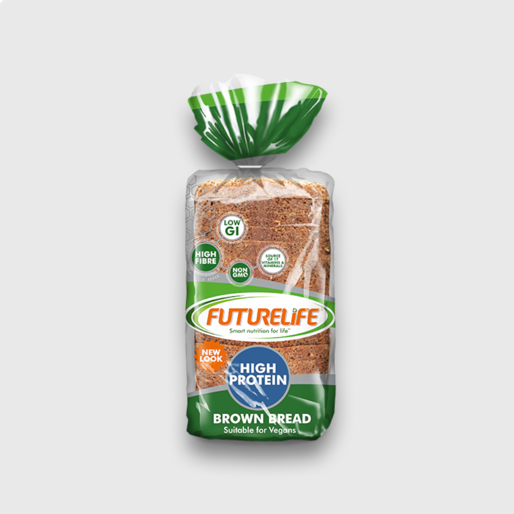 The FUTURELIFE® HIGH PROTEIN BROWN BREAD RANGE offers 3 delicious loaves that are vegan-friendly and provide Low GI, High Fibre, quality grains in a unique formulation that is a source of Omega-3 and High in Protein.